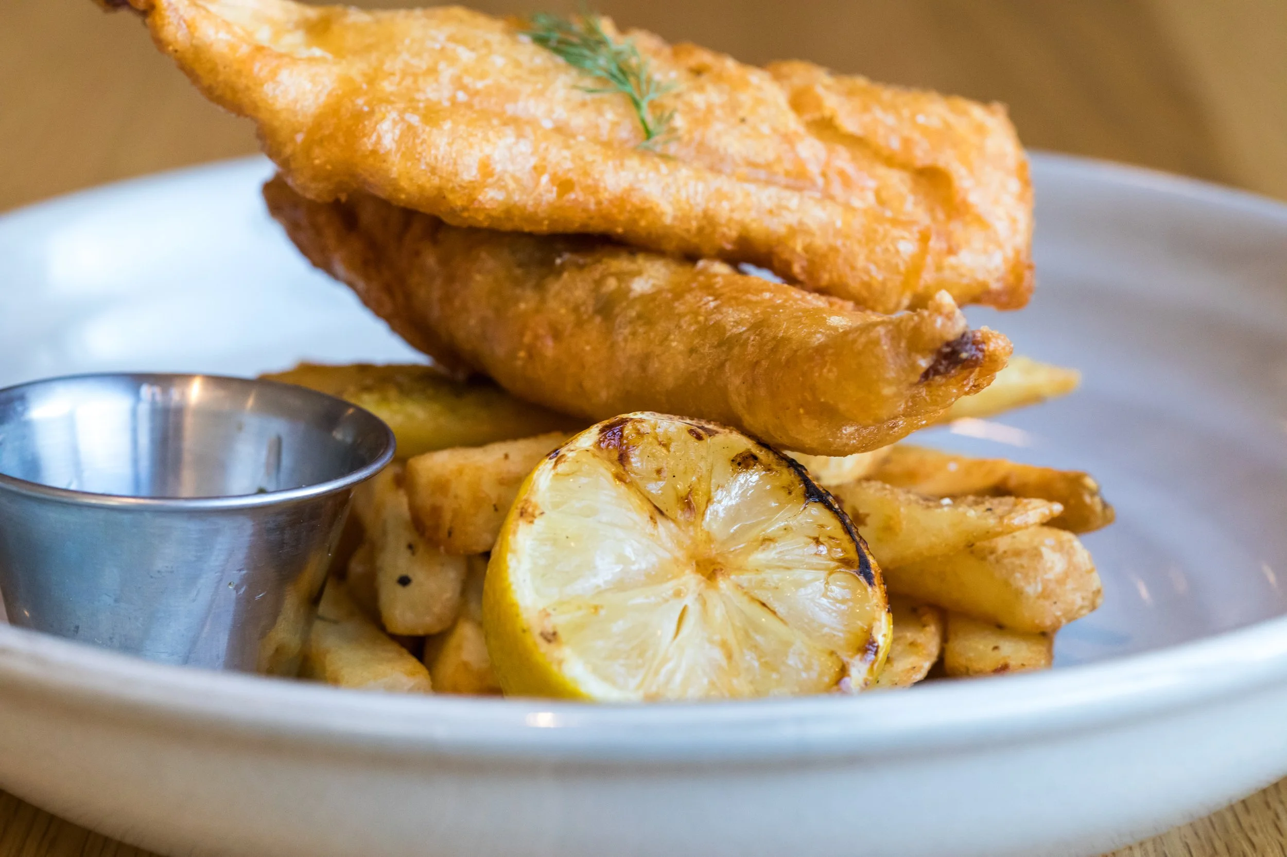 Our Tilapia, battered in Sam Adams tempura and served over malt vinegar–glazed fries with dill tartar sauce, is waiting for you. Only $14.99 at Watermill Kitchen + Bar.